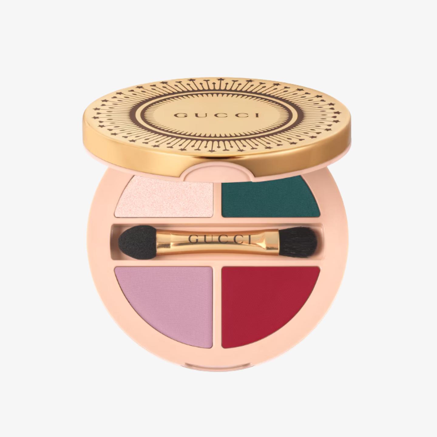 Palette de Beauté Quatuor multiplies creative freedom with a four-part palette for eyes, lips, and cheeks. From soft to sophisticated and every look in between, intuitive formulas and inventive shades offer endless combinations. Comfortable to wear and long-lasting, three powder formulas in satin and matte finishes can be used as eyeshadow or blush. These colors are combined with a cream formula, ideated to warm up eyes, lips, and cheeks. Inspired by Gucci Beauty lipsticks, the allover cream shade brings a bare-to-bold blushing effect that intensifies with every touch.