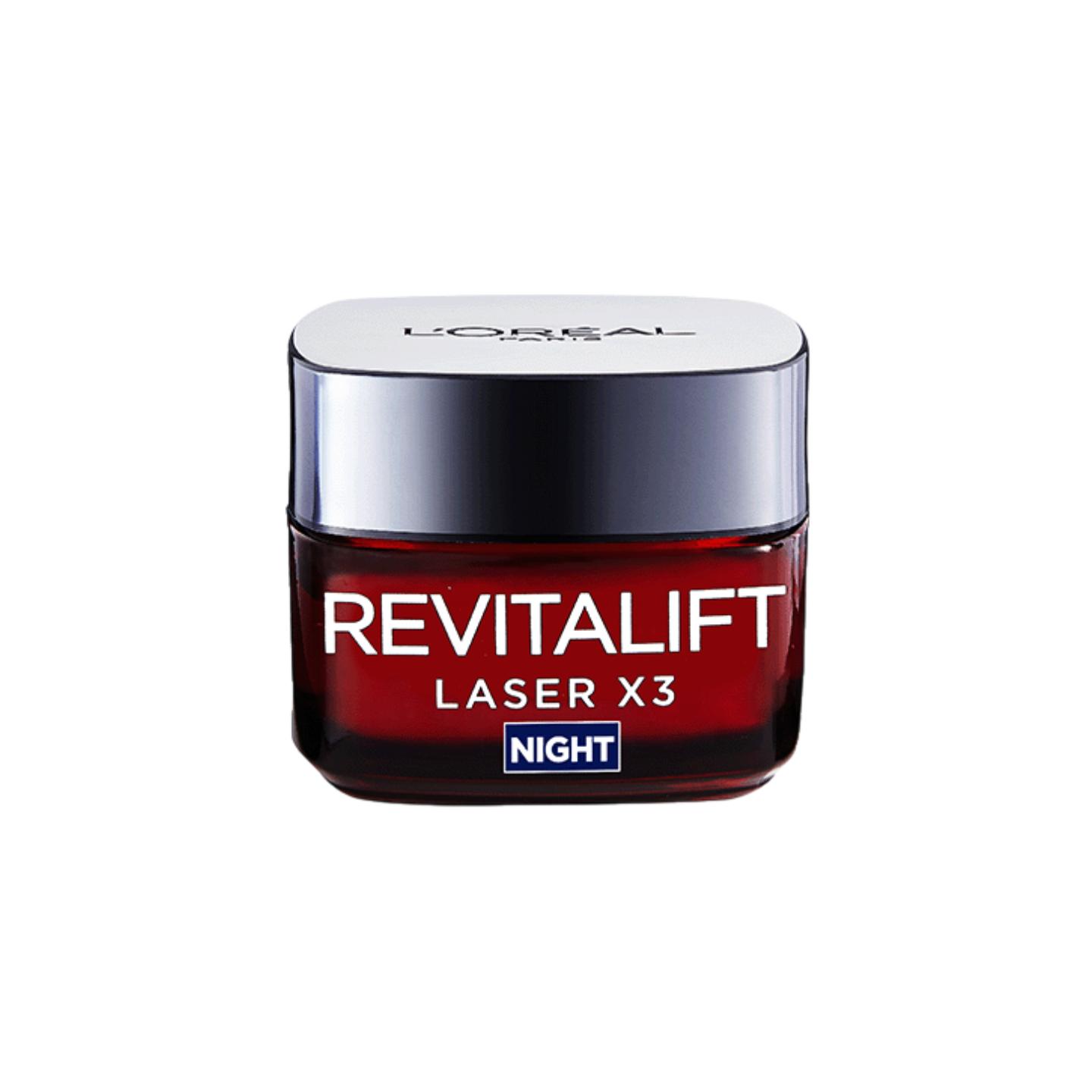 Revitalift Laser Triple Action Anti-Ageing Night Cream, now with a NEW formula, smooths wrinkles, re-texturisers and restores the look of skin. Formulated with 3 top derm actives, Pro-Retinol, Hyaluronic Acid and Vitamin C, this formula targets signs of ageing and renews skins appearance. Validated by dermatologists and effective on all skin types.