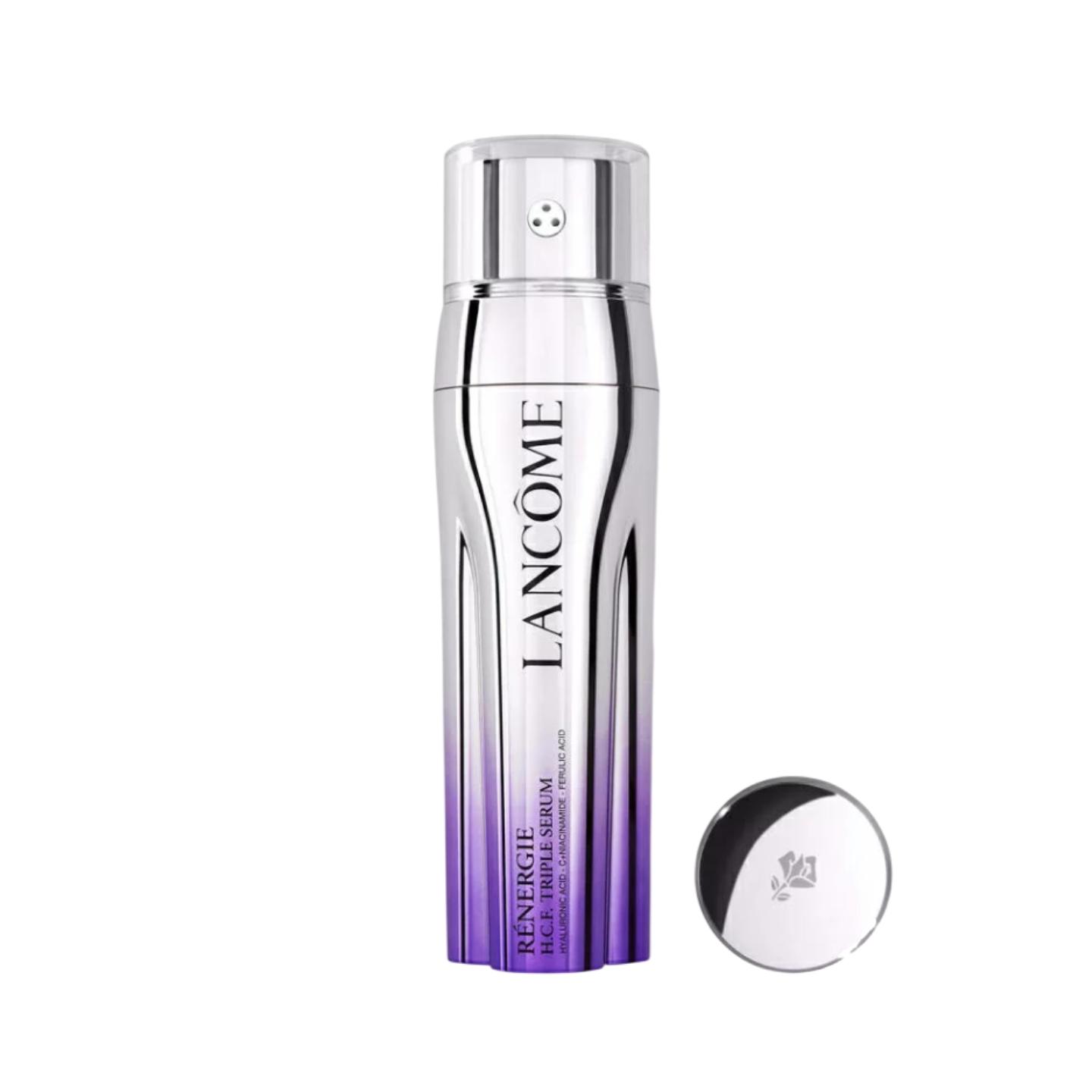 Discover the new era of Lancôme high-performance anti-aging inspired by regenerative skin sciences. Patented innovation, Rénergie H.C.F. Triple Serum masterfully concentrates into one radically caring triple dose Hyaluronic Acid, Vitamin C derivative + B3 and Ferulic Acid. Each powerful alone, yet impossible to combine in one single formula, they now freshly fuse into a high performance anti-aging concentrate to restore skin at in 3 ways. 100% women agree skin looks smoother in one triple dose.