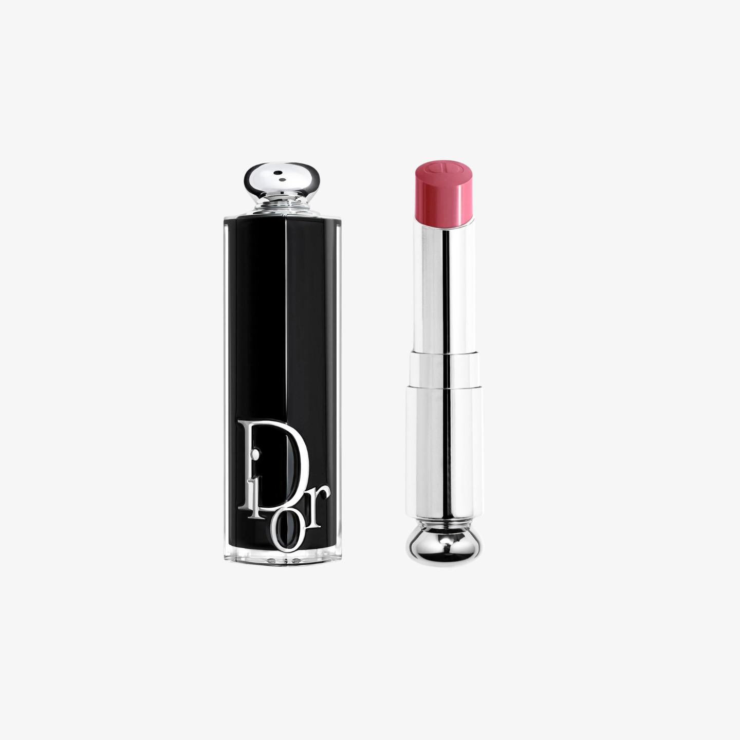 The Dior Addict Shine lipstick, a classic rose-colored shade from the Dior Addict Shine collection, features a glossy, mirror-like finish and high moisturizing properties, making it perfect for creating an elegant and sophisticated everyday lip look.