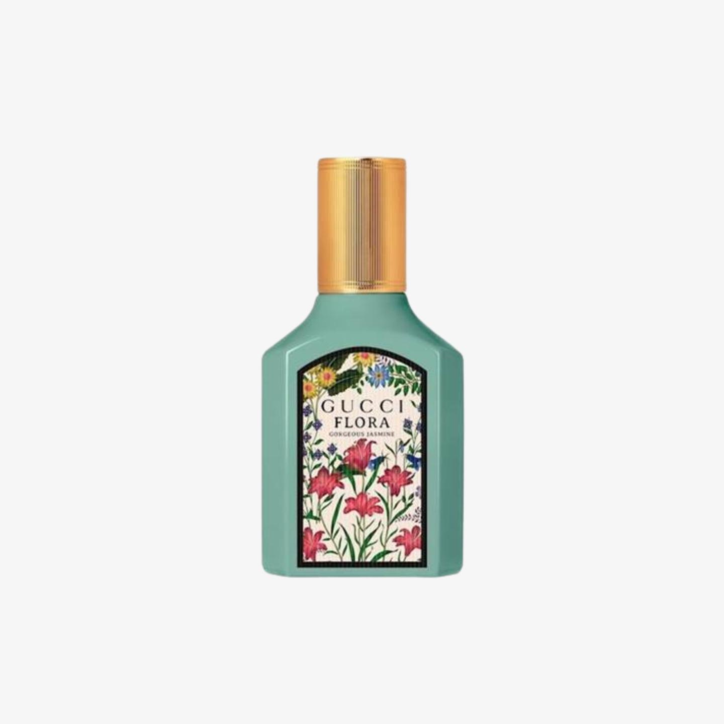 Gucci Flora Gorgeous Jasmine Eau de Parfum bursts with a radiant composition led by Grandiflorum Jasmine. Tender wreaths of noble Jasmine are transformed through extraction into the heart and spirit of Gucci Flora Gorgeous Jasmine, resulting in an enlightened expression of this precious flower. Blended with base notes of Sandalwood and Benzoin, its sensual notes create a skin imprint unique to the wearer. Its energy of inner joy is further lifted with notes of Mandarine Essence and Magnolia Accord, which infuse the scent with a joyful feeling. The House’s distinctive Flora pattern seals the design with a magical touch, fortifying Gucci Flora Gorgeous Jasmine as an object of inspiration.