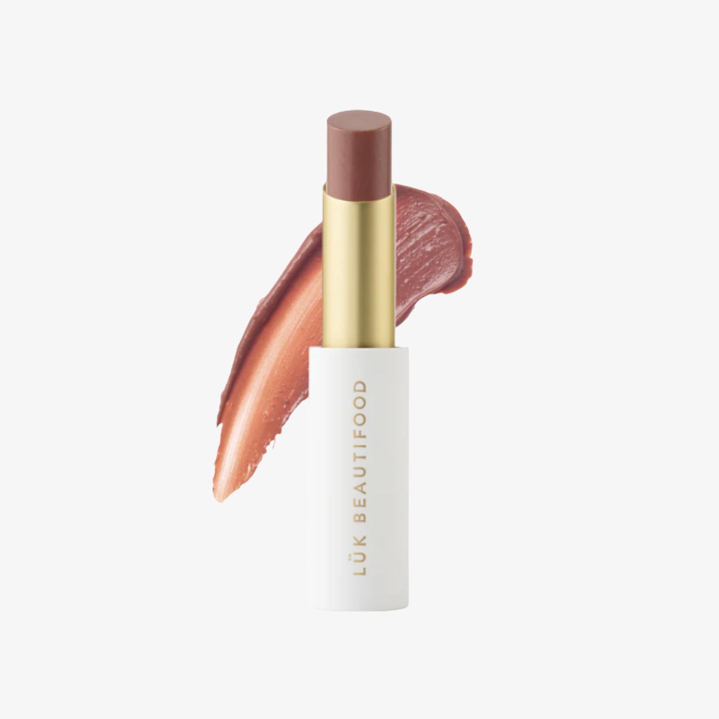 LUK BEAUTIFOOD 100%天然珠光唇膏 #玫瑰核桃色,帶來柔美深邃的玫瑰棕色調,同時兼具極致滋潤與溫暖享受!