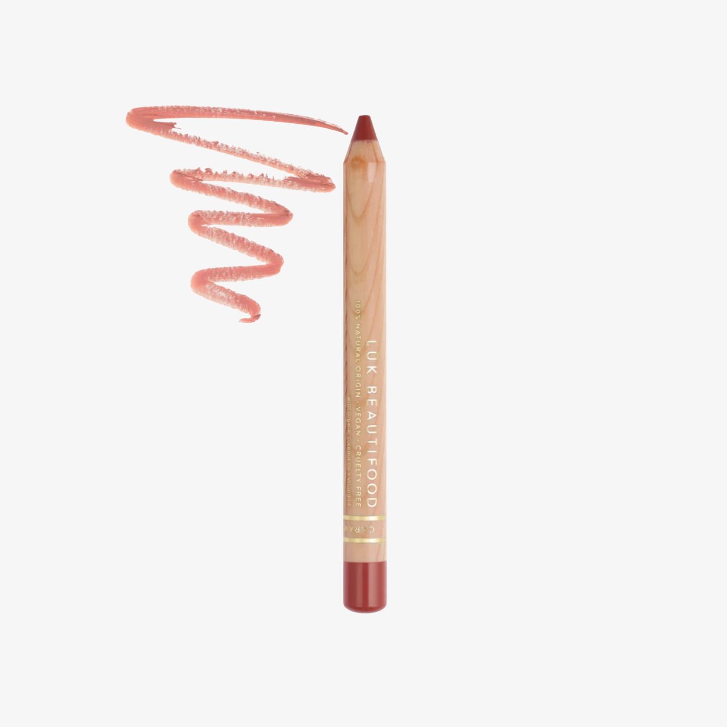 Luk Beautifood 柔霧絲絨唇彩筆 #Caramel Kiss,結合天然唇膏與唇線筆二合一功能,帶來中性焦糖玫瑰棕色調,高顯色、持久舒適、滋潤不黏膩!