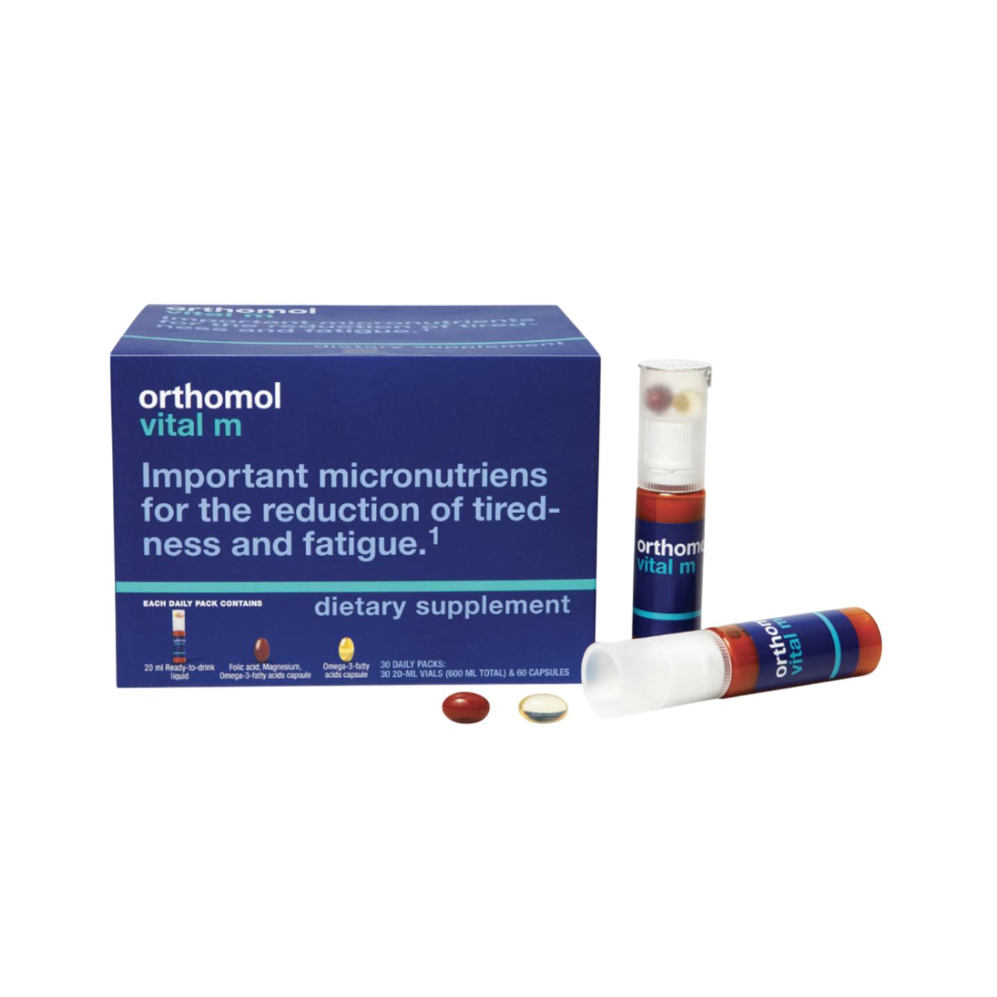 Orthomol 男士專用綜合營養飲透過即飲小瓶與錠劑雙重形式,提供強效必需營養組合。