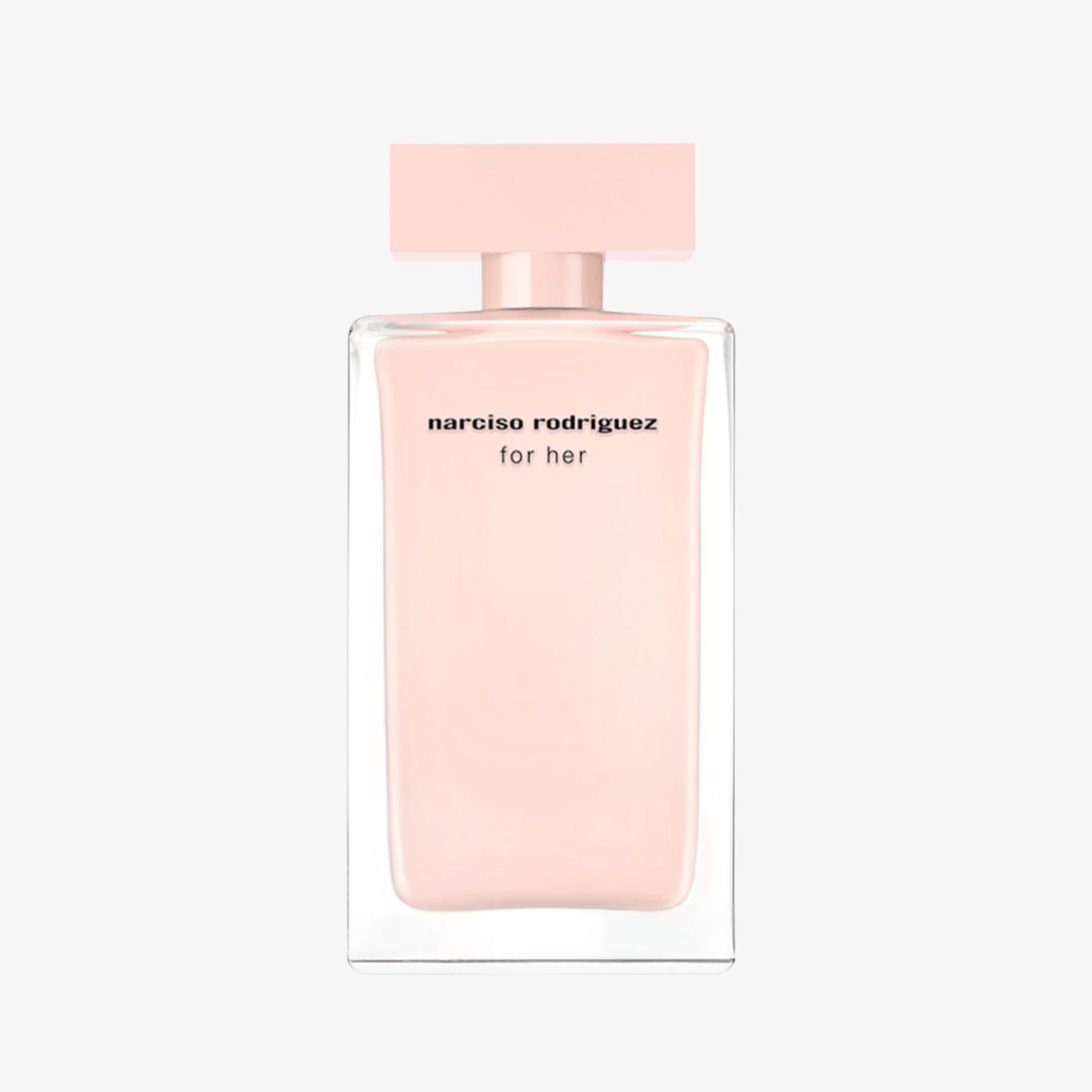 for her 女士淡香精的瓶身沿襲 for her 系列標誌性的建築感外形——明晰利落的輪廓,令人聯想現代主義風格建築時尚、簡潔的線條感造型。 for her 女士淡香水的黑色內裝漆替換為同是 narciso rodriguez 香水標誌配色的精巧淺粉色,for her 女士淡香精更添馥鬱深邃,使感官愉悅更深一層。